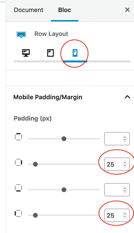 Et pour la version mobile de notre page d’accueil, on ne voudra pas un tel ‘padding’, donc il suffit de remettre à 25 pixels les ‘paddings’ gauche et droite pour la version mobile comme ceci: