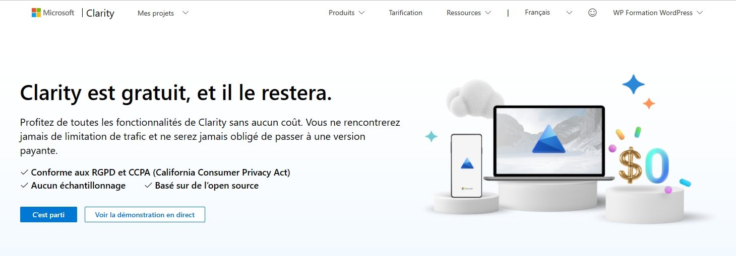 - Avant toute chose, ouvrez un compte sur https://clarity.microsoft.com/
